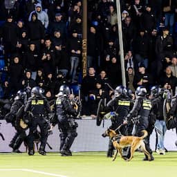 Rellen bij bekerwedstrijd FC Den Bosch-ADO: supporters en ME op het veld